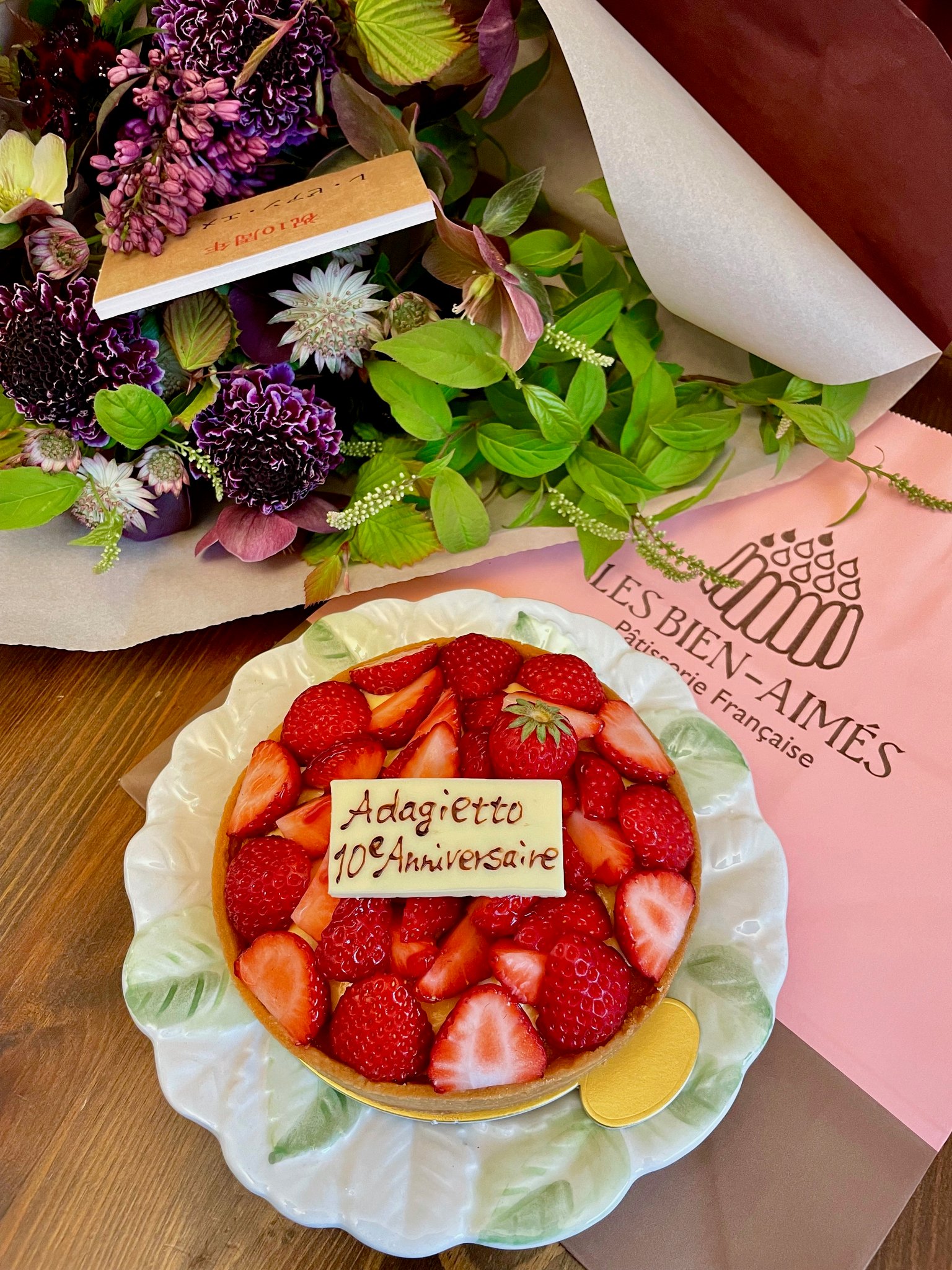 素敵な花束と大好きないちごのタルトを
